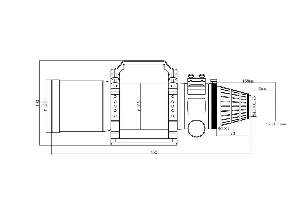 85mm(from base of M86×1 thread on the rotator to focal plane)