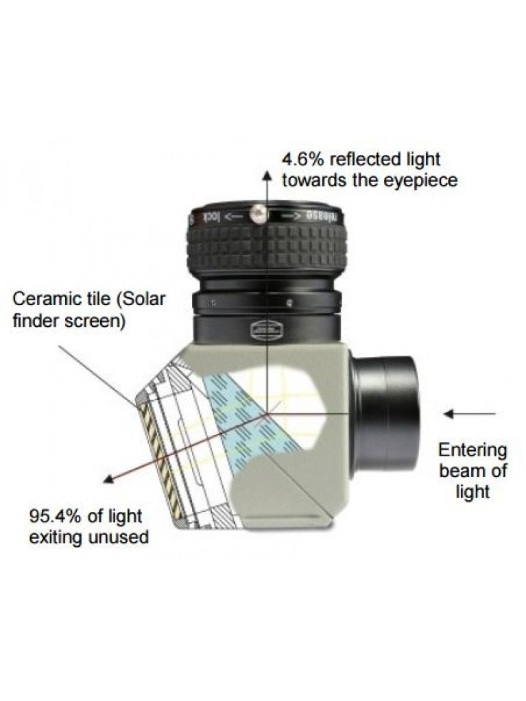 - Solar Finder: The translucent ceramic tile acts as projection screen for the unfocused image of the Sun. Aiming the telescope at the Sun becomes very easy.