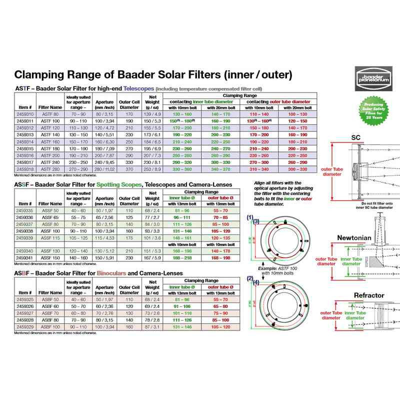 Baader ASTF 240 mm Solar Filter Specifications