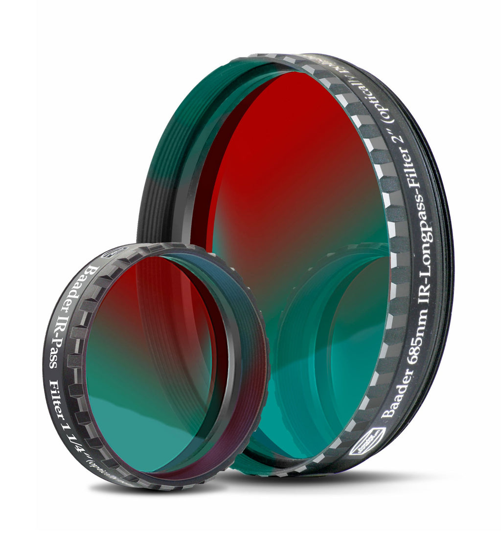 - The effect of use: The normal spectral bandwidth is 400-700nm. This filter starts at 670nm in the deep red, just in the visual range so it can be focussed correctly. At this long-wavelength spectral range the atmospheric air turbulence (seeing) has much lower impact on the sharpness. Dark structures on Mars, Jupiter the Moon and the Sun are thereby rendered much sharper. The luminosity can then be combined with RGB creating a very sharp LRGB image.
