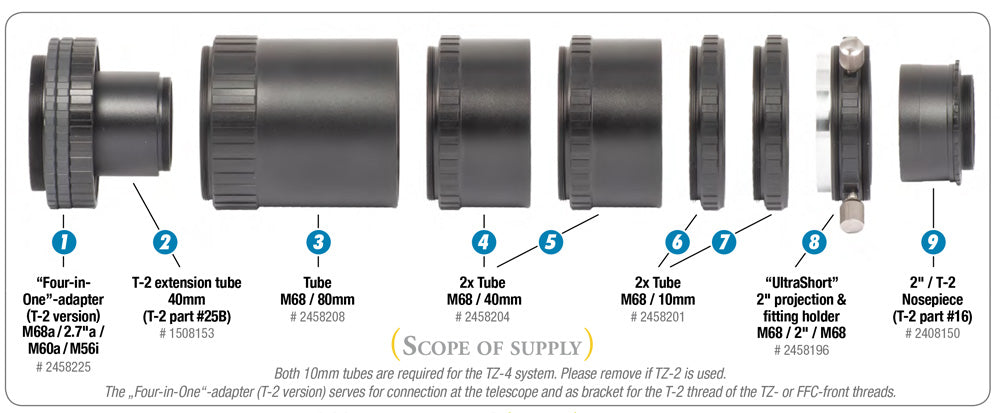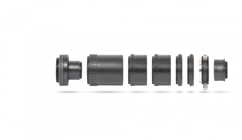 The seperate extension tubes enable you to use the system with variable length according to the needs of your setup to achieve the best resultsuse every distance. At the same time, stray light is blocked – no light from the outside can diminish the contrast, and the inside of the telecompendium is carefully blacked.