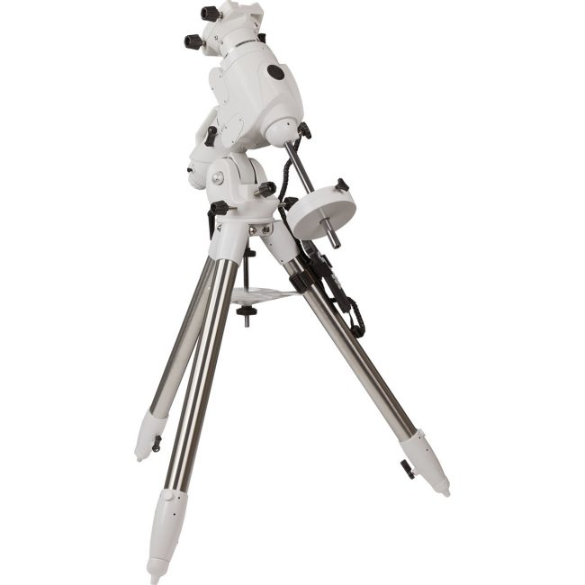 As customary with all Sky-Watcher products, an assortment of accessories are included with the EQ Pro mount. A retractable counterweight bar is supplied, allowing for easier transportation as well as two 11-lb counterweights are included to help balance any payload. The EQ Pro features a saddle compatible with both D and V style mounting plates, granting users the flexibility to utilize multiple optical tubes, even if the mounting plate is different.