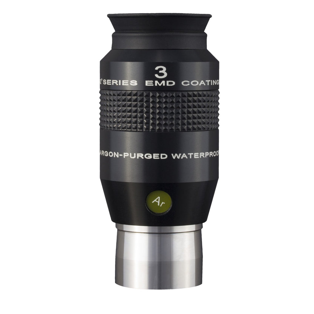 A new focal length joins the Explore Scientific line of inert gas-purged Waterproof Eyepieces with the 3mm 52° Series Eyepiece. A logical companion for the “grab-and-go” ED80mm f/6 Air-Spaced Triplet, this eyepiece produces 160X which will perform very well with good seeing conditions on planetary objects, and to split double stars. On the ED152 at f/8, 405X is achieved without the use of a Focal Extender or Barlow for those nights of near perfect seeing, with a very comfortable 15mm of eye relief.