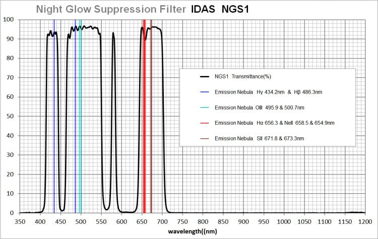 DAS Night Glow Filters enhance the contrast of astronomical emission nebulae against a sky with both man-made and natural* sky glow sources, yet preserve color balance of broadband objects such as galaxies. As with other IDAS interference filters, the bandpasses are designed to accommodate the steep ray angles of fast optical systems.