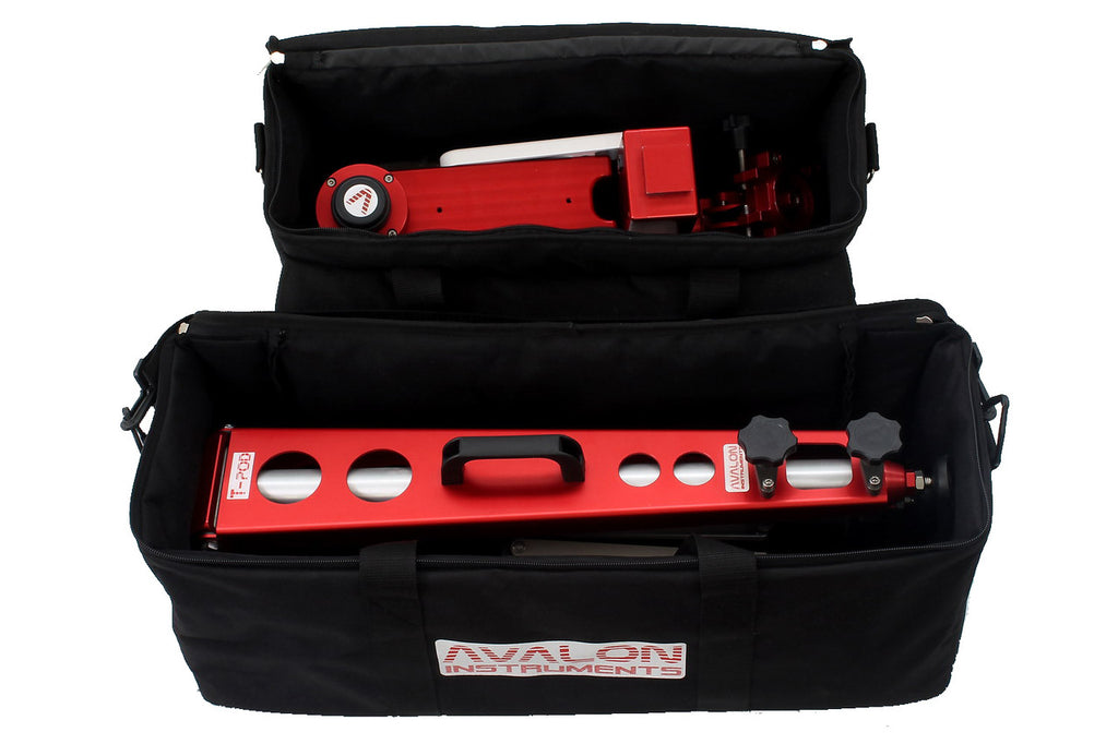 The M-zero can be balanced, in most cases, with less than 1 kg/2.2 lb counterweight due to the possibility of placing the declination arm in different positions relative to the right ascension arm. The M-zero and the T-pod 90, requiring limited room, maybe easily arranged inside a medium-size carry-on case allowing a convenient setup for air traveling Astro-amateurs.