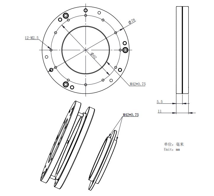 The New T2 tilter adds multiple screw holes to help connect to ZWO EFW (compatible to 2” EFW filter wheel).
