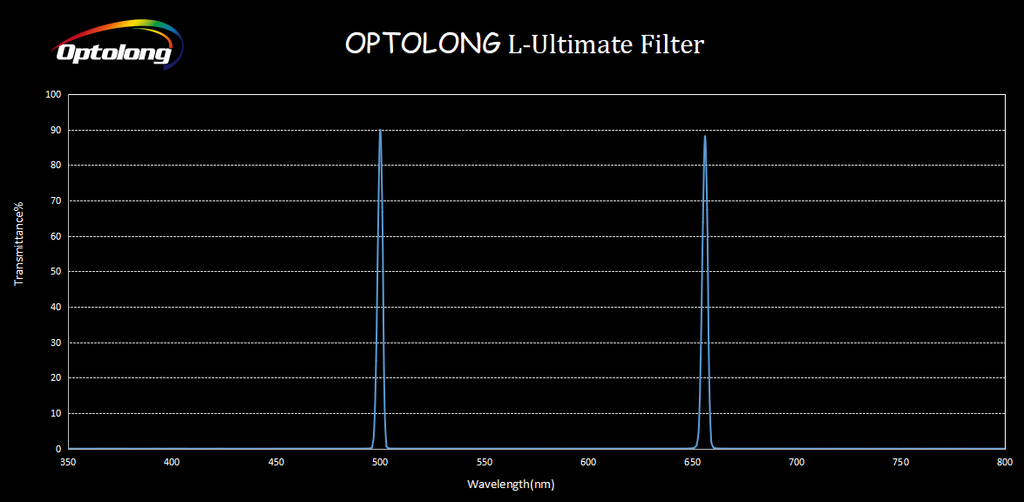 The advantage of L-Ultimate is that it only passes through the emission lines OIII(500.7nm) and Ha(656.3nm), in which case all other light pollution emission lines are eliminated so that only the emission and reflection signals of the nebula are captured during imaging. Therefore, the sky background of the image is darker, and the contrast between the nebulae and the signal-to-noise ratio are improved to the greatest extent. In heavy light pollution areas, the product can also selectively filter light pollution and clutter signals through the emission lines of nebulae, and finally avoid the impact of light pollution on astrophotography.