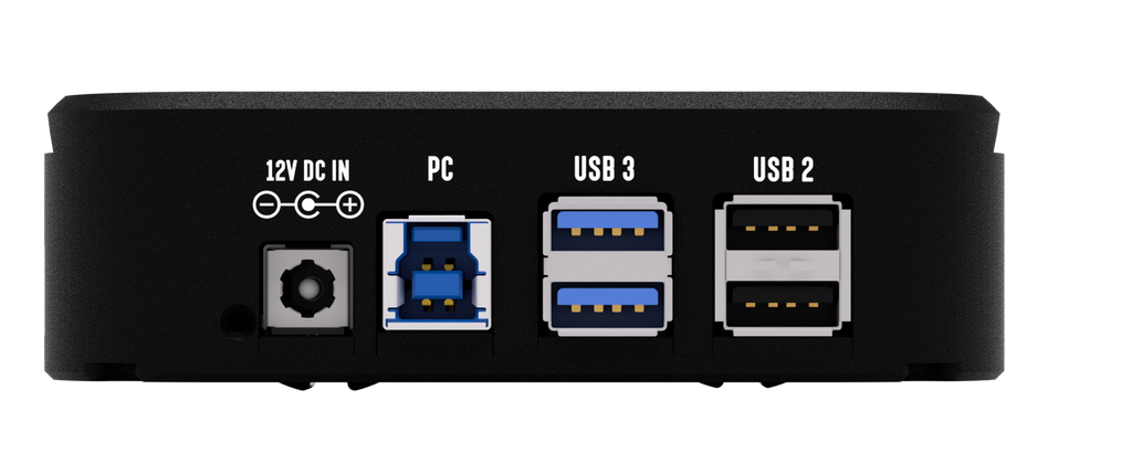 A powered USB3 Hub at the back of the device provides: