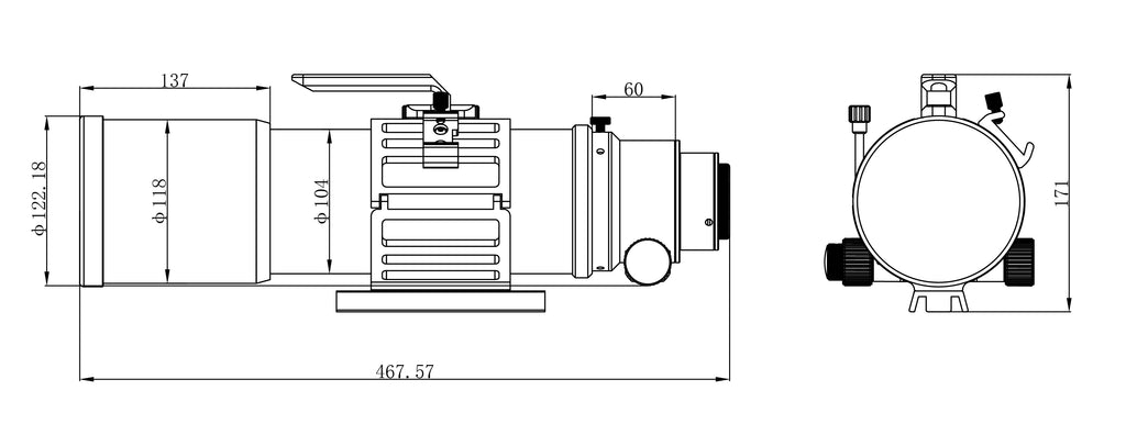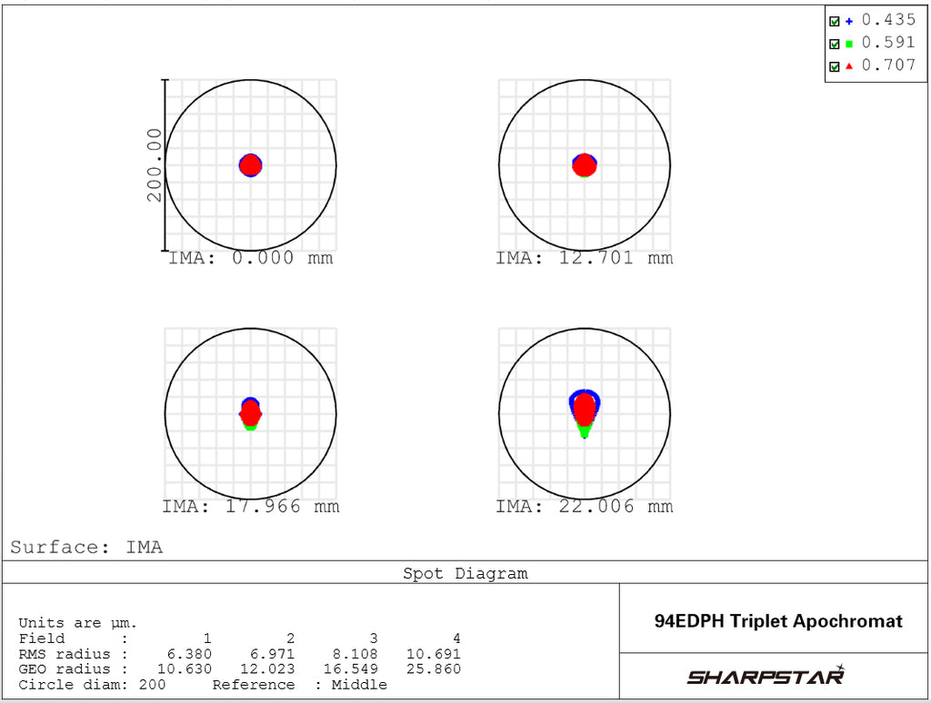 Objective type: Triplet air-spaced APO (two of which are ultra-low dispersion ED glass)