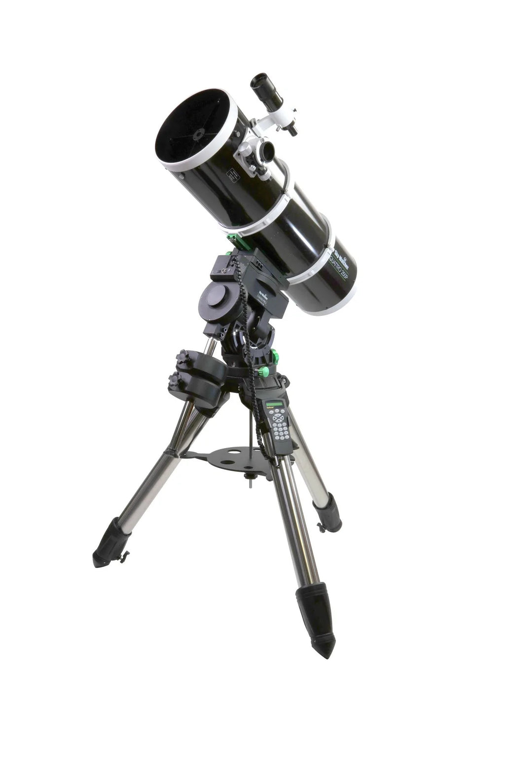 Other special features of the CQ350 include a high-precision, 0.9° hybrid stepper motor, spring loaded worm gears, synchronous wheel and belt drive modes, locking RA and Dec clutches, an oversized latitude knob for use with cold weather gloves on, a D-/V-style dovetail mounting platform, and optional external polar scope. The CQ350 mount head is also compatible with the EQ8-R tripod.
