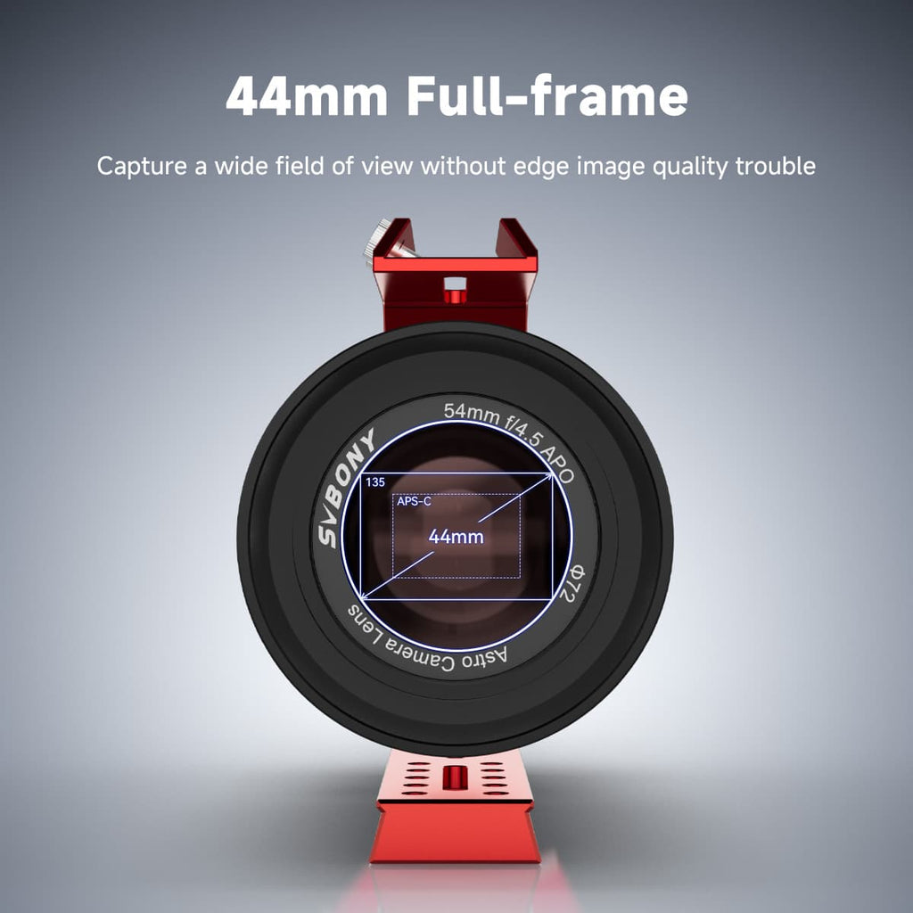 Svbony SV555 professional astronomical photography telescope APO is designed for deep-sky photography. Petzval objective lens structure includes a triplet lens and 2-ED glasses offering a clear image without aperture blocking. 44mm full frame has a wide field of view and provides a clearer image. EAF kit and fine adjustment make it convenient to shoot. F22 to F4.5 variable aperture meets different use needs. For photography users, SV555 will be a better choice to use. It is going to be an ace travel lens for your journey
