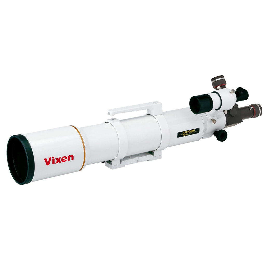 The Vixen Optics AX103S is a top-of-the-range ED apochromat in the refractor series. It features a triplet ED object lens and a rear-mounted field-flattener lens. The f8.0 refractor contains a central ED lens in the objective and reduces chromatic aberration to an absolute minimum.