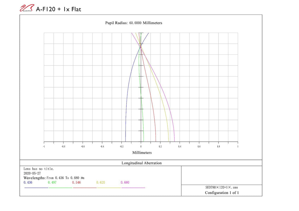 The William Optics FluoroStar 120 Refractor is an air-spaced triplet APO. Using three elements made of high-end fully coated glass like FPL-53 virtually removes chromatic aberration and produces images that are sharp and full of contrast. A patented light weight Bahtinov mask is included to provide assistance in focusing, or you can remove it when using the F120 visually.