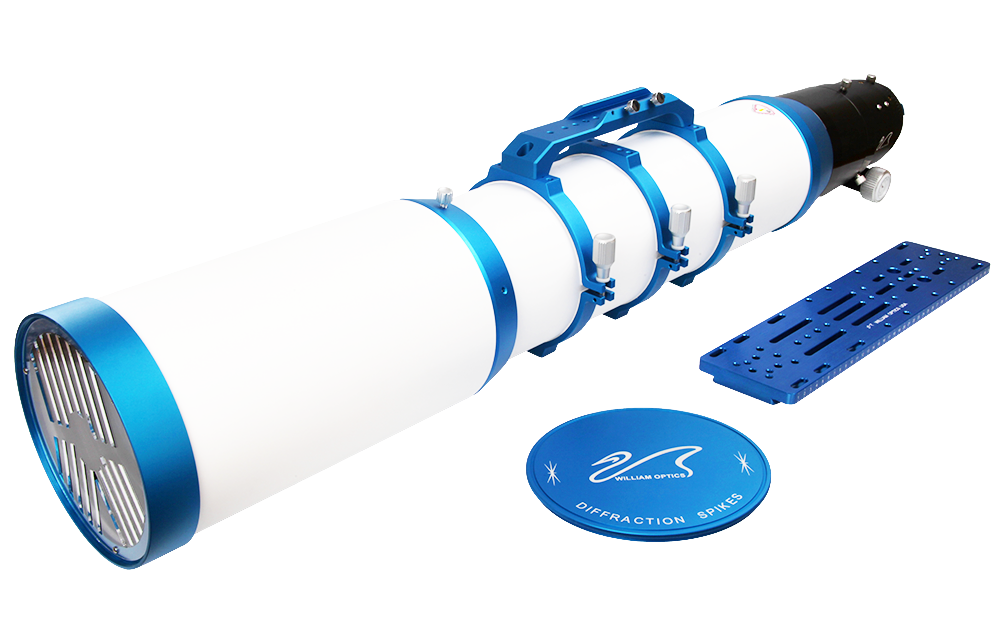 The William Optics FluoroStar 156 Refractor is an air-spaced triplet APO. Using three elements made of high-end fully coated glass like FPL-53 and Lanthanum virtually removes chromatic aberration and produces images that are sharp and full of contrast. A patented light weight Bahtinov mask is included to provide assistance in focusing, or you can remove it when using the F156 visually.