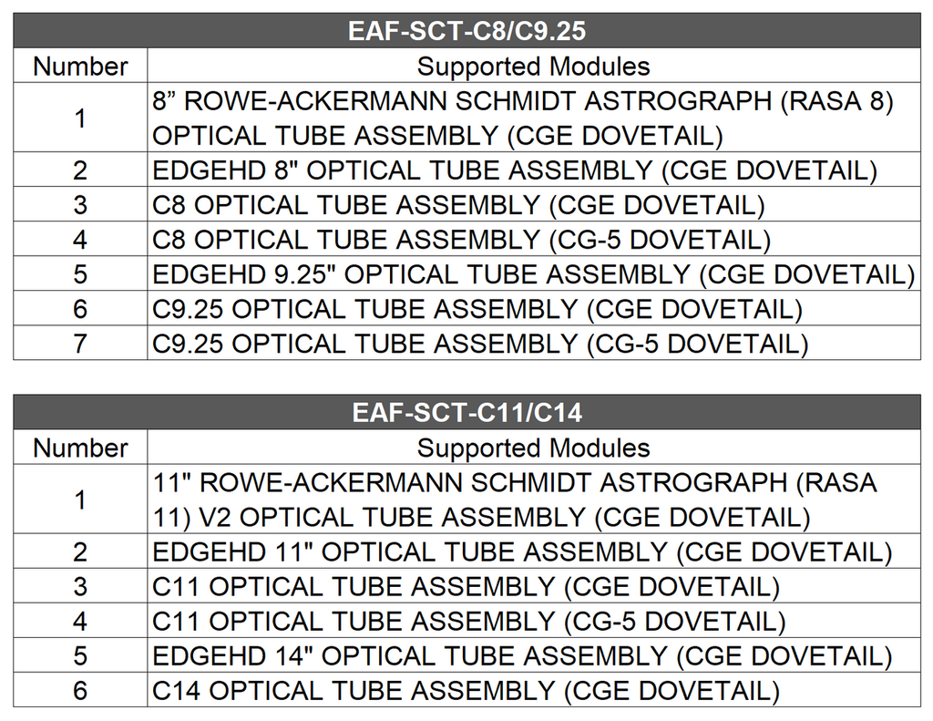 This bracket is designed to work with C11 and C14 Celestron SCT scopes. You can directly connect it to the scopes without using the feather touch focusers.